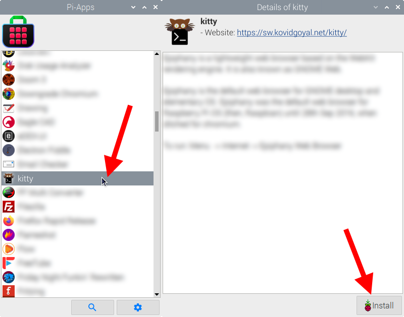 Now that you have Pi-Apps installed, it is time to install kitty.